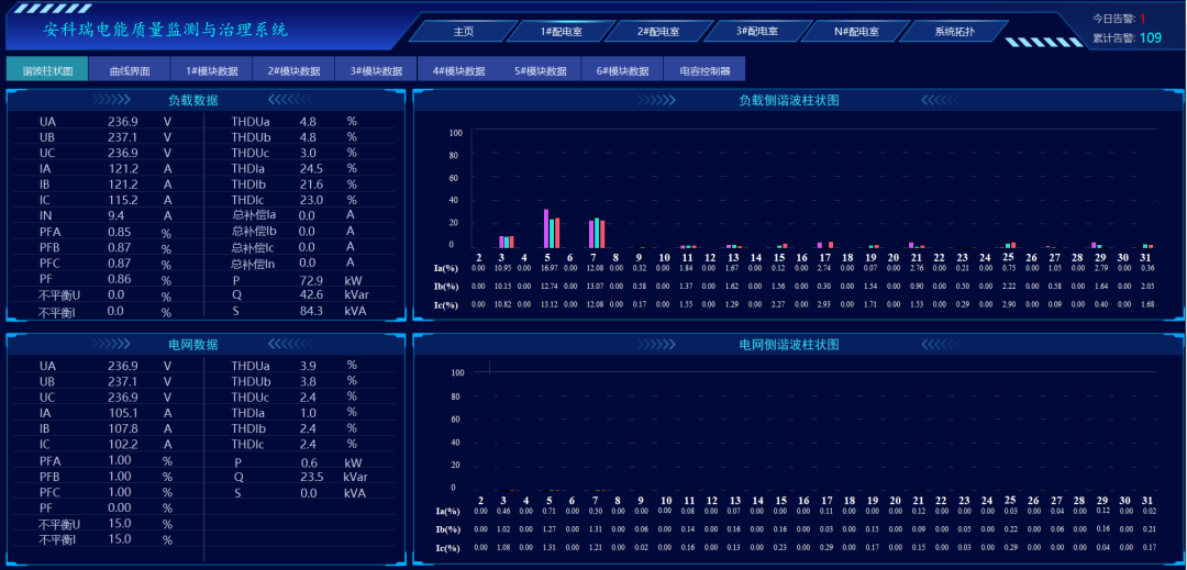 系统内置强大的数据分析功能,能够自动识别谐波源和不平衡负载,并生成详细的分析报告,为治理方案的制定提供科学依据。
