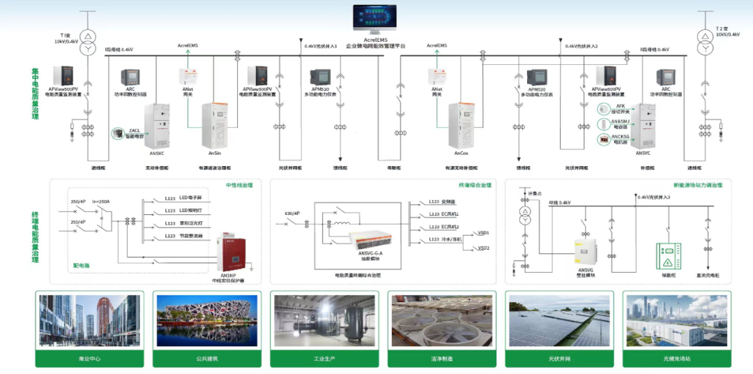 从 “发现问题" 到 “解决问题" 的闭环方案面对这些痛点,安科瑞推出了低压电能质量监测与治理系统,为企业提供了一套从监测、分析到治理的完整解决方案。